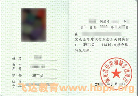 学员考试合格后,由湖北省建设厅监制,并由湖北省建设教育协会颁发的培训合格证书,此证书上加盖湖北省建设行业专业技术管理人员关键岗位培训合格证书专用章,全国范围内通用,持有此证,是为建设工程企业提供用人或从事施工员专业技术管理工作的依据,可湖北省建设厅官方网站http://www.hbsjst.gov.cn进行查询。